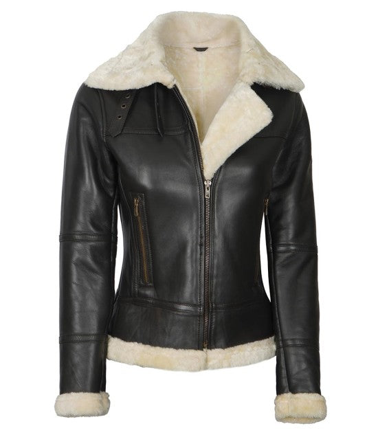 Women's Brown Shearling High Quality Leather Bomber Jacket